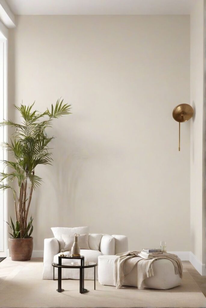 - Illumination douce : Le blanc cassé capte la lumière sans l’agressivité du blanc pur, ce qui en fait un excellent choix pour des pièces manquant de lumière naturelle.