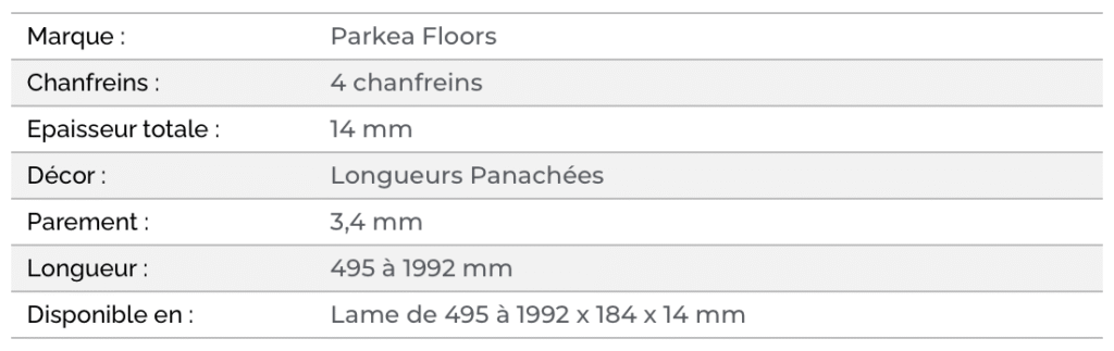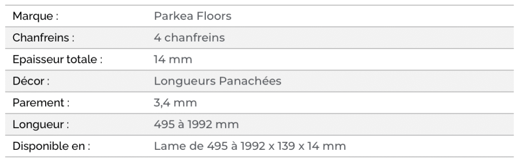 Intemporel et authentique, Parkea Alto 139 allie production 100% française de qualité et facilité de pose grâce au système ‘clic’.